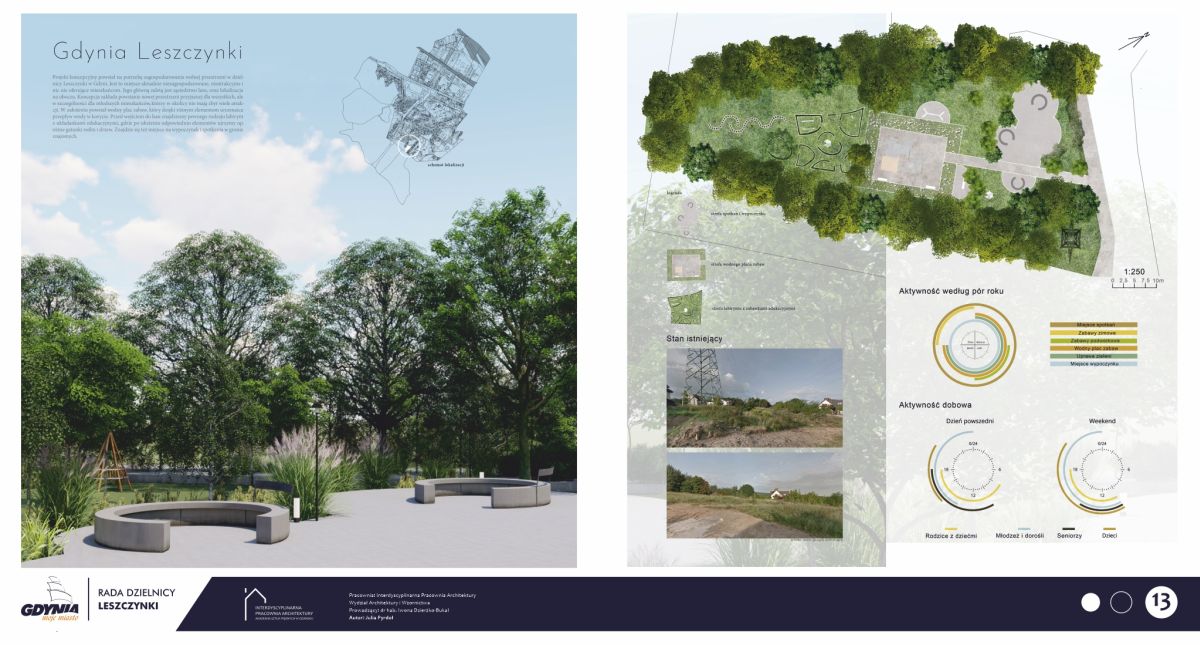 Od dnia 1 września, na pasie zieleni rozdzielającym ulicę Morską na wysokości Estakady Kwiatkowskiego, można obejrzeć 17 tablic przedstawiających wizje studenckie dotyczące naszej dzielnicy. Gościem specjalnym, zaproszonym na prezentację instalacji, była Pani profesor dr hab. Iwona Dzierżko-Bukal z Wydziału Architektury i Wzornictwa ASP.